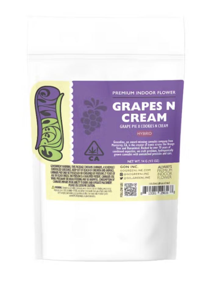 Grapes N Cream is a balanced hybrid bred from Grape Pie x Cookies and Cream. Known for its rich grape flavor accented by hints of pear and vanilla, this strain delivers a creative cerebral lift paired with calming body effects—perfect for winding down or getting inspired in the evening.