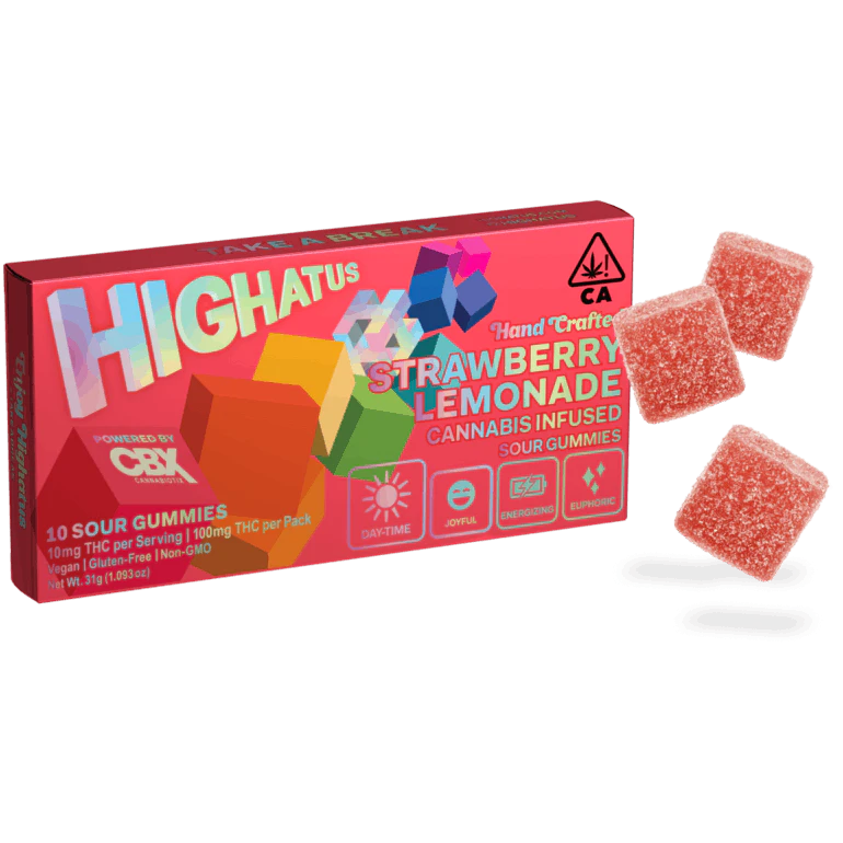 A delightful blend of strawberries and lemons combined to enhance your day with an explosion of delicious flavor. This THC infused recipe will have you feeling like it's summer all year long. Crafted with sativa terpenes, our Strawberry Lemonade sour gummy can result in a boost of euphoric energy, providing the perfect joyful buzz for a warm weather day.