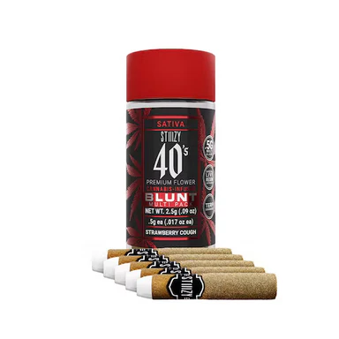STIIIZY 40’s Mini Blunts Multipack is filled with premium grown STIIIZY cannabis and packed in individual glass vials to maintain freshness and potency. Each 40’s Mini Blunt is rolled with 100% tobacco free, kief dusted hemp wraps which packs a flavorful and potent punch with every exhale, and the tightly secured custom glass tips have been perfected to provide an amazing and consistent burn every time. The STIIIZY 40’s Mini Blunts Multipack is reinventing your high experience by being one of the first to introduce 40% THC and total cannabinoids potency with special live resin infusion.
