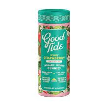 Lean into relaxation and recovery with Good Tide Kiwi Strawberry THC:CBD:CBG gummies.--Hybrid single-strain rosin along with an extra boost of CBG are wrapped up with juicy kiwi strawberry flavors to help you fully reset.--10mg THC:CBD:CBG per gummy, 100mg THC:CBD:CBG per container.--Made with fully compostable packaging!