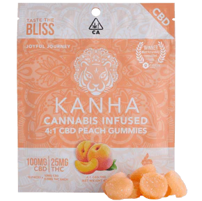 Kanha gummies are made with all-natural ingredients, coloring, and flavoring. Each gummy is infused with the highest quality cannabis oils to provide the most consistent, safe experience on the market. Our Peach 4:1 gummies are delectably sweet and made with 10mg CBD and 2.5mg of THC per gummy. CBD is a non-psychoactive cannabinoid believed to be an anti-inflammatory agent, natural sleeping aid, anxiety suppressant, pain reducer, and more.