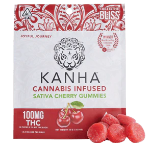 Kanha gummies are made with all-natural ingredients, coloring, and flavoring. Each gummy is infused with the highest quality cannabis oils to provide the most consistent, safe experience on the market. Our Cherry gummies are juicy sweet and made with sativa terpenes, which induce a stimulating and uplifting state of mind.