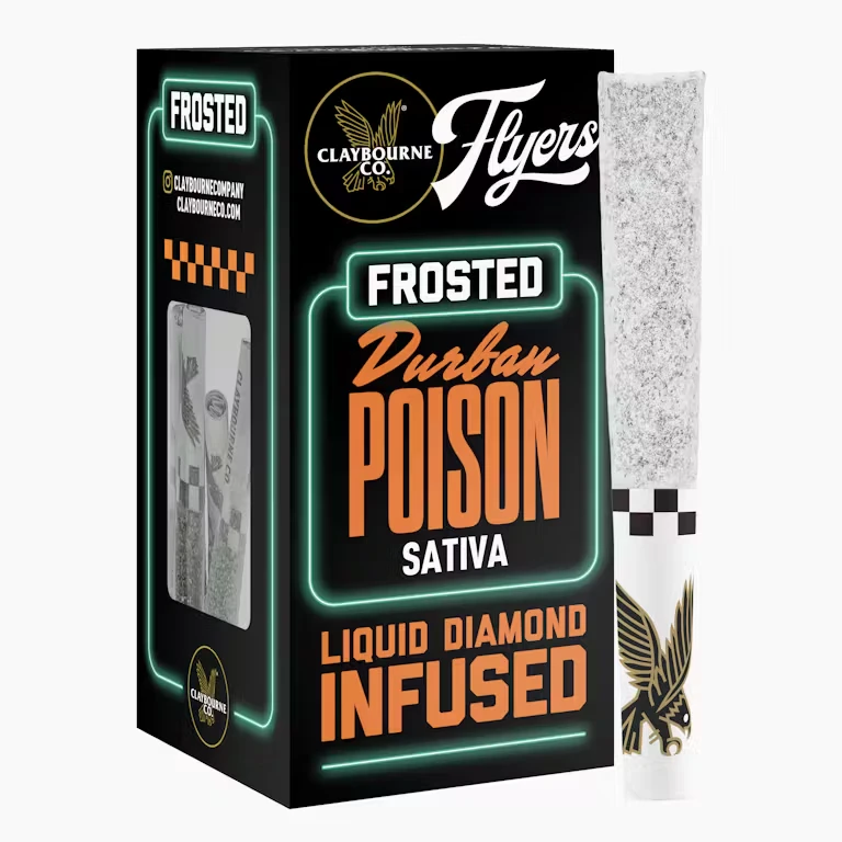 Frost Around & Find Out! These super tasty half gram pre-rolls are Diamond Frosted, Terpene Enhanced, and made from Premium Indoor, Full Nug Flower Infused with Liquid Diamonds. Each Frosted Flyer is highly potent and packed with nonstop flavor all the way down to the crutch. Available In: (1g) 2-Packs & (2.5g) 5-Packs.