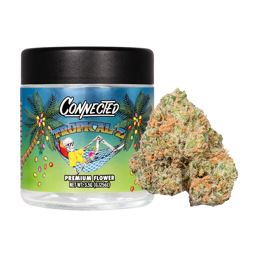 Tropical Z has a punchy and sweet aroma with a distinctly orange citrus zest that lingers in your nose bringing to mind island fruit and shaved ice. Glittering trichomes seamlessly blend the fuzzy clumps of pistils with the mottled sage and deep greens of the margins creating the illusion of a fuzzy orange nug when held at arm's length. These large, medium density nugs have a distinctly sharp conical shape. The flavor is citrusy and creamy on the pull, just like a frosty creamsicle. In contrast, the exhale is dry and woody but not unpleasant. A prime example of an excellently engineered sativa dominant strain. Perfect for staying focused and getting things done without leaving you feeling paranoid or overly caffeinated. Perfect for daytime and late-night use.