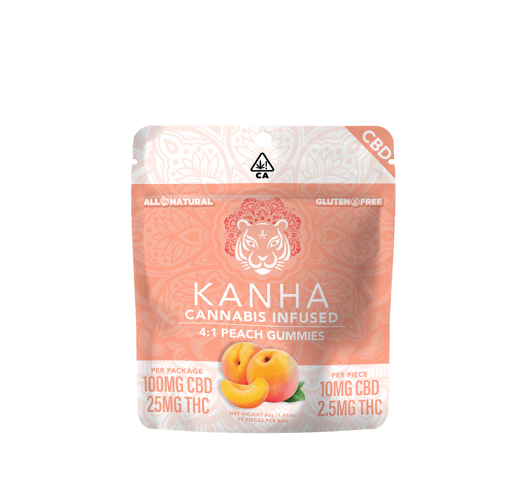 The peach, a stone fruit that originated in Ancient China, delights the palate with gentle floral sweetness spiked with sour and tangy notes. Packing all this flavor in a fluffy-soft base, 4:1 Peach CBD delivers 10mg of CBD and a 2.5mg microdose of THC in each gummy, with an added kick of flavors and aromas from terpenes like limonene, α-humulene and myrcene. With limited THC elevation, this gummy supports focus and concentration while providing the relaxing benefits of ample CBD content.