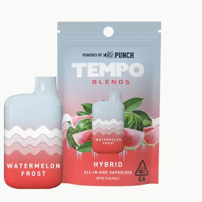Tempo Blends Watermelon Frost, where juicy watermelon bursts across the palate with every inhale, followed by subtle hints of cooling menthol that awaken your senses. This smooth, balanced flavor delivers a clean fusion of fruity sweetness and cooling freshness that feels both invigorating and satisfying. Infused with caryophyllene terpenes to complement its Hybrid profile, Watermelon Frost offers a signature blend of terpenes for a truly distinct taste, creating a well-rounded experience that’s calming yet uplifting.