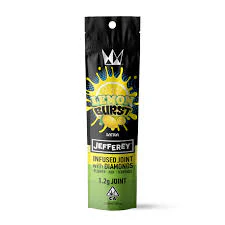 The Lemon Burst Jefferey 1.2g Single is a Sativa masterpiece designed for those who enjoy vibrant, citrus flavors with a powerful kick. Each joint is meticulously crafted from premium flower, infused with potent live resin diamonds, and dusted with fine kief. Enhanced with a subtle coating of all-natural terpenes, it offers an exhilarating, high-energy experience ideal for creative pursuits or social activities. Perfect for cannabis connoisseurs seeking a flavorful and invigorating smoke.