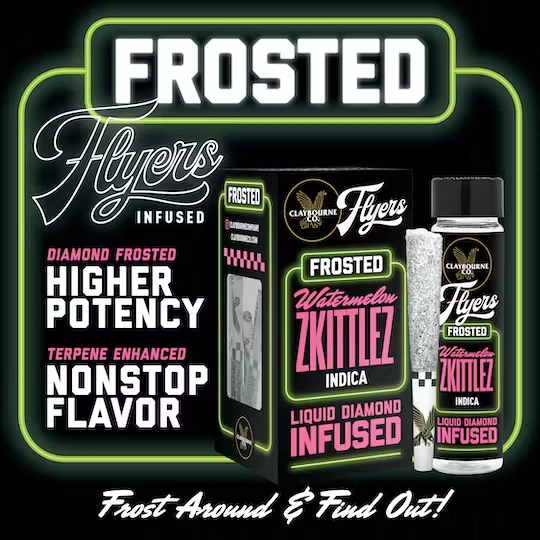 Frost Around & Find Out! These super tasty half gram pre-rolls are THCa Diamond Frosted, Terpene Enhanced, and made from Premium Indoor, Full Nug Flower Infused with Liquid Diamonds. Each Frosted Flyer is highly potent and packed with nonstop flavor all the way down to the crutch. Available In: (1g) 2-Packs & (2.5g) 5-Packs. ______ Get a sugar high with some mouthwatering Watermelon Zkittlez. This Indica (Zkittlez x Watermelon) offers an intense burst of Watermelon flavor and notes of sweet citrus and earth. Its effects can set in quickly, delivering a head-rush of euphoria followed by a heavy body high that will have you locked in your seat. Flavors Sweet Tropical Earthy