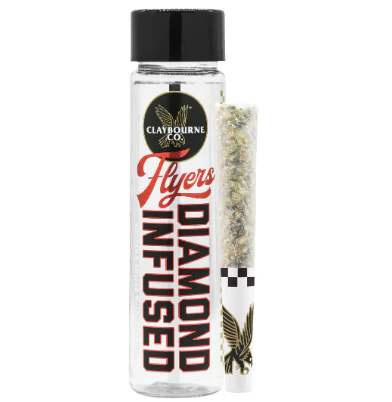 Diamond Infused Flyers from Claybourne will take you higher than any other. These ultra potent Flyers are made from Premium Indoor Full Nug Flower and infused with crushed, pure THCa diamonds and rolled in a Half Gram pre-roll. Experience the ultra potency of Claybourne Diamond Infused Flyers.