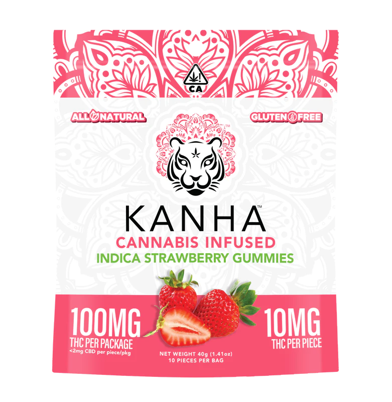 Kanha gummies are made with all-natural ingredients, coloring, and flavoring. Each gummy is infused with the highest quality cannabis oils to provide the most consistent, safe experience on the market. Our Strawberry gummies are satisfyingly sweet and made with indica terpenes, which induce a calm and relaxed state of mind. 10 pieces x 10mg/gummy = 100mg/bag ��