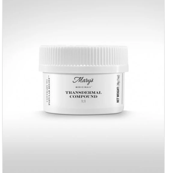 Transdermal Compound A spot-specific transdermal balm formulated to allow for much deeper absorption than traditional cannabis topicals. Due to its transdermal elements, it will reach for deeper relief than typical balms and lotions. Mary’s Transdermal Compound, our top-selling topical, has the potential to reach connective tissues, joints and muscles with its relieving qualities. Features a 1:1 blend of THC and CBD and is available in two sizes.