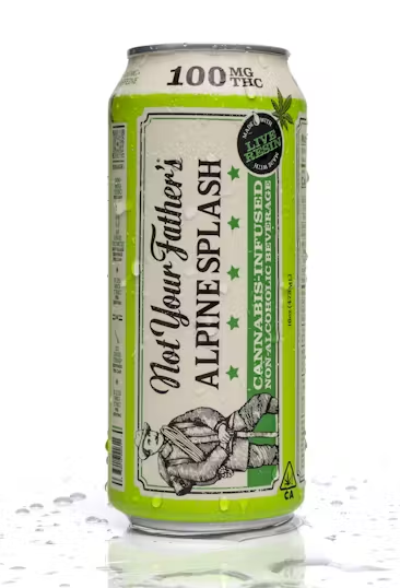 Introducing Not Your Father's Alpine Splash, now available in 16oz cans, fully loaded with 100mg THC, signature smooth flavor, and infused with Live Resin!