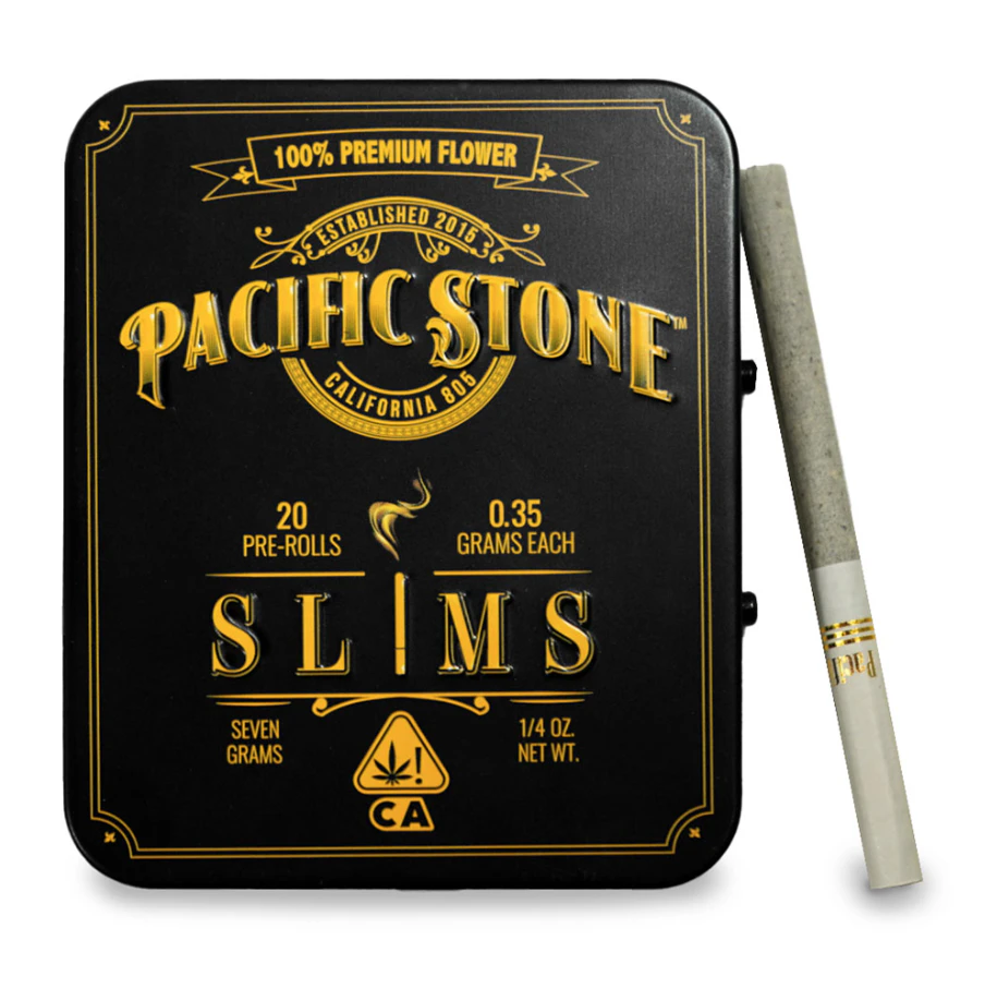 Not your typical pre-roll. Pacific Stone Premium Pre-rolls are carefully packed with our premium 100% greenhouse flower, no shake or trim, giving each pre-roll a consistent smoking experience. Pacific Stone has various strains perfect for any time of the day and is great for igniting with friends. We only sell what our Pac Stone team grows and cures to bring you farm-direct California cannabis at an affordable price. Pacific Stone Slims offer the perfect blend of quality and convenience for those who value a premium smoking experience on the go. Each Slim is carefully crafted from 100% California greenhouse-grown premium flower, ensuring that every puff delivers the freshness and potency you expect. Grown in sustainable greenhouses, our flower benefits from a clean and controlled environment, resulting in a product that is as eco-friendly as it is high-quality. The Slims' smaller size not only makes them ideal for discreet smoking but also intensifies the vibrant flavor profiles of each strain, turning every session into a unique and enjoyable experience. Whether you're out exploring or unwinding after a long day, the Slims 20-pack is your go-to choice for a convenient, flavorful, and environmentally conscious smoke.