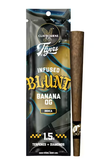 Meet the 'Loudest on the Block': Flyers 1.5g Infused Blunt. Crafted from premium indoor, full nug flower infused with THCa & liquid diamonds, natural terpenes and wrapped in an herbal blend cone made of chamomile, cacao, & yerba maté. A badass blunt built better. ______