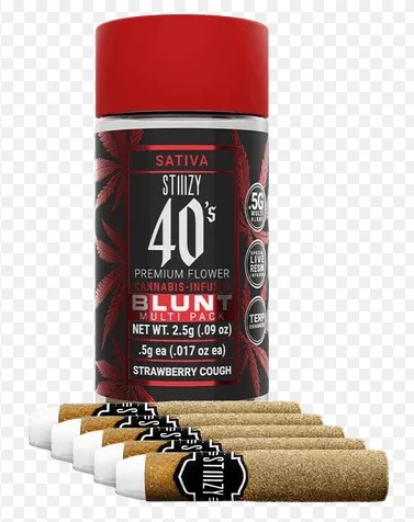 STIIIZY 40’s Mini Blunts Multipack is filled with premium grown STIIIZY cannabis and packed in individual glass vials to maintain freshness and potency. Each 40’s Mini Blunt is rolled with 100% tobacco free, kief dusted hemp wraps which packs a flavorful and potent punch with every exhale, and the tightly secured custom glass tips have been perfected to provide an amazing and consistent burn every time. The STIIIZY 40’s Mini Blunts Multipack is reinventing your high experience by being one of the first to introduce 40% THC and total cannabinoids potency with special live resin infusion.