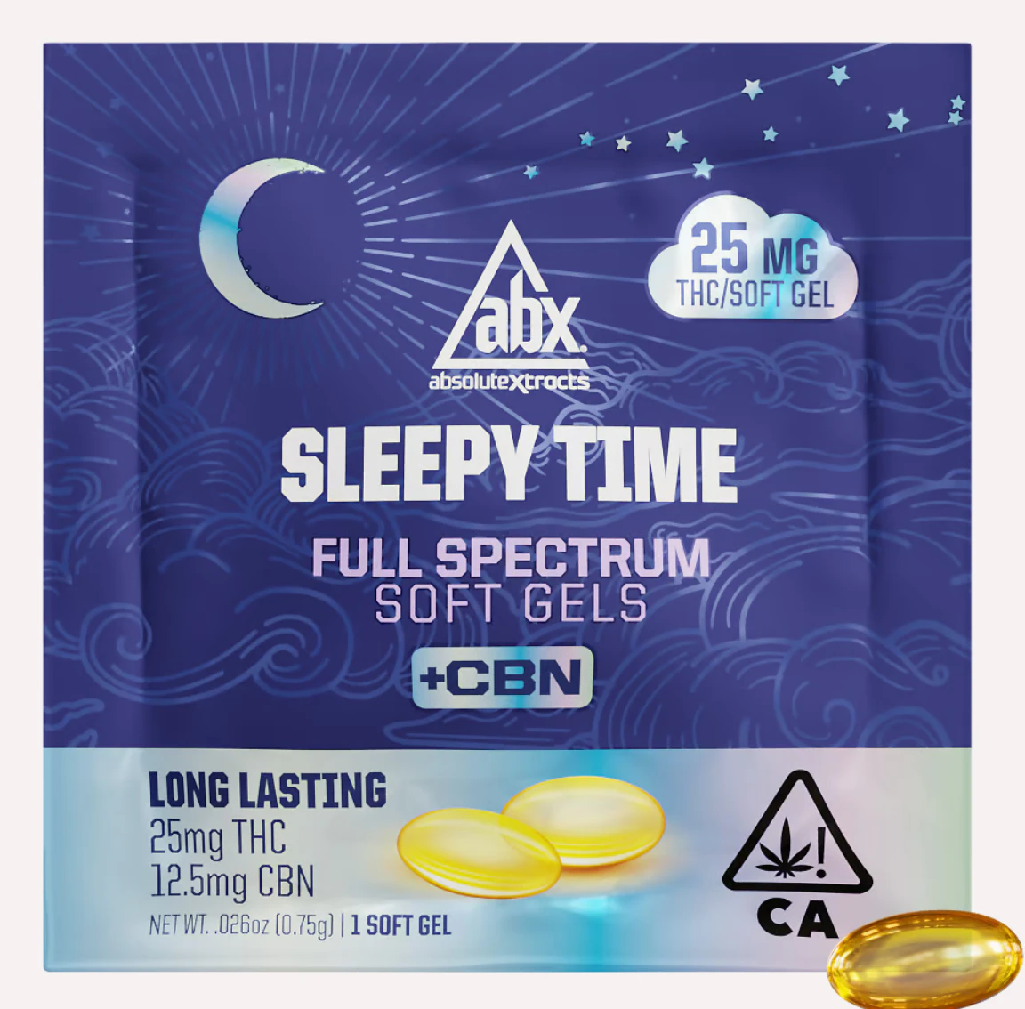 ABX Sleepy Time soft gel capsules are formulated with potent, premium THC and a supporting blend of terpenes designed to promote restful slumber. Natural, long-lasting relief in a precisely-dosed capsule. 25mg THC is considered a high dose for novice cannabis users. For those with a higher THC tolerance, 25mg may be considered a moderate dose.
