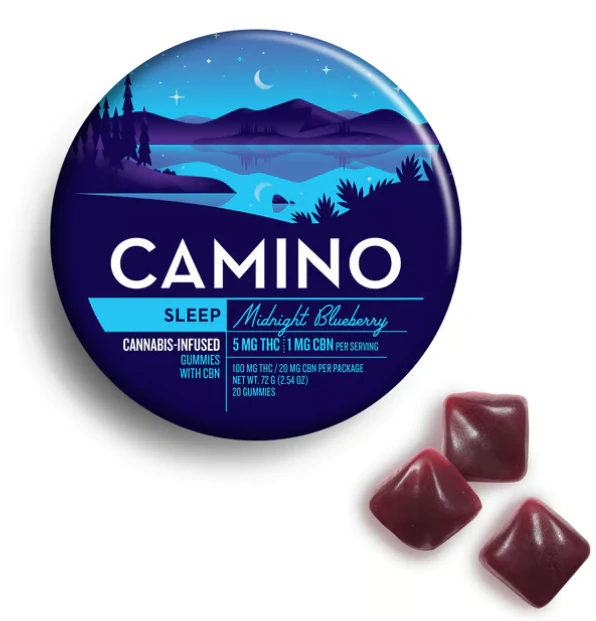 A physical road takes you to a physical place. Camino (“road” in Spanish) takes you to a state of mind. Settle in for a smooth slumber in a cozy lake cabin and let all your worries go. Our Midnight Blueberry gummies pair relaxing terpenes with a hint of chamomile and lavender for a soothing, restful effect that’s boosted by a key ingredient- CBN. These gummies contain 5MG of THC and 1 MG of CBN to support not just your ability to fall asleep, but to encourage a more restful night’s sleep overall. Even better, this ratio minimizes the “cannabis hangover.” Our formulation team used the principles of the entourage effect to take two cannabinoids paired with isolated terpenes to create a Camino that encourages the best possible night’s sleep. Each tin contains 100mg THC/20mg CBN.