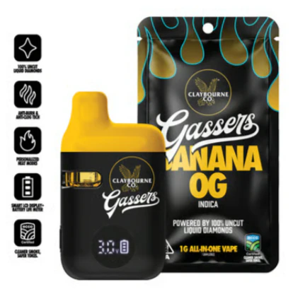 Meet the cleanest and the meanest, Gassers All-In-One Vape. Powered by 100%, uncut liquid diamonds delivering next-level potency & flavor in a personalized, pocket-ready device. Built tough, tuned for performance, and certified clean so you can stay always on the gas. Available now in (15) 1g strains from classic gas to fruity bangers. Pure Liquid Diamonds + Natural Terpenes: Nothing Cut, Nothing Diluted with an Average of 90-92% Total THC. Palm-Style, USB-C Rechargeable: Ready-to-Go on the Low. Anywhere at Anytime. Adjustable Temperature Control: Dial-In Max Flavor or Cloud Intensity. Smart LCD Display: Easier to Use Settings for Total Control. Anti-Burn & Anti-Clog Tech: Smooth Drags from First to Last. High-Performance Build: Oil-Resistant & Heat-Proof to Avoid Microplastic Breakdown. ECCO Certified Clean Oil: Tested for over (60) Extra Pesticides Beyond California State Requirements.