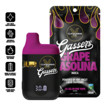 Meet the cleanest and the meanest, Gassers All-In-One Vape. Powered by 100%, uncut liquid diamonds delivering next-level potency & flavor in a personalized, pocket-ready device. Built tough, tuned for performance, and certified clean so you can stay always on the gas. Available now in (15) 1g strains from classic gas to fruity bangers. Pure Liquid Diamonds + Natural Terpenes: Nothing Cut, Nothing Diluted with an Average of 90-92% Total THC. Palm-Style, USB-C Rechargeable: Ready-to-Go on the Low. Anywhere at Anytime. Adjustable Temperature Control: Dial-In Max Flavor or Cloud Intensity. Smart LCD Display: Easier to Use Settings for Total Control. Anti-Burn & Anti-Clog Tech: Smooth Drags from First to Last. High-Performance Build: Oil-Resistant & Heat-Proof to Avoid Microplastic Breakdown. ECCO Certified Clean Oil: Tested for over (60) Extra Pesticides Beyond California State Requirements.