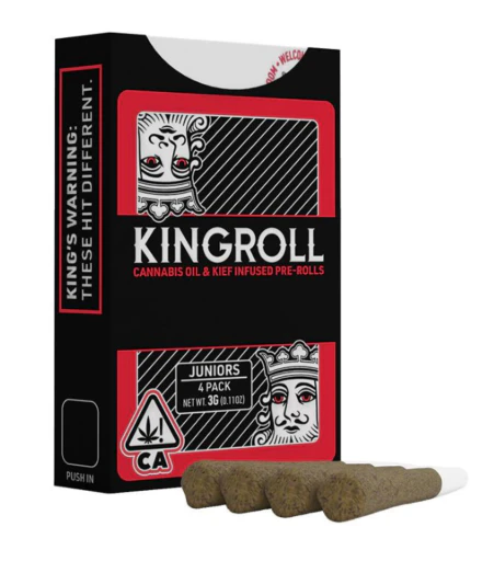 Every box of Juniors contains 4 individual .75 gram kief coated pre-rolls, infused with Kingpen's cannabis oil and combined with high-quality flower. Great for multiple clean, slow-burning seshes.