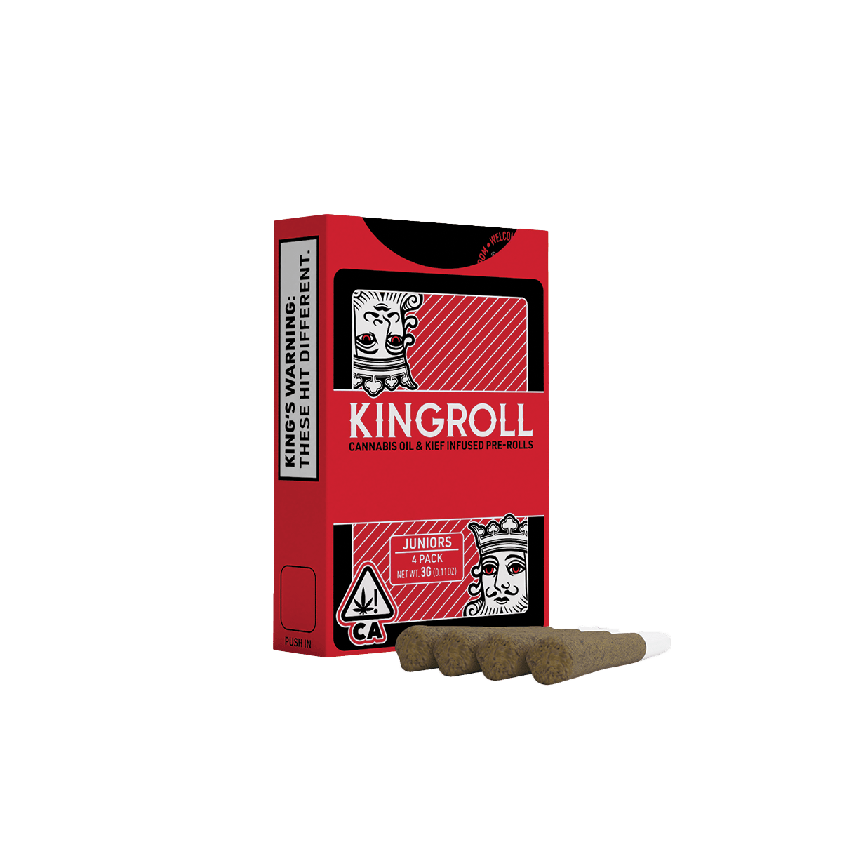 From the legendary brand Kingpen, Kingrolls are premium joints made with only whole nug flower, infused with Kingpen cannabis oil and coated in golden kief. Kingrolls are highly potent, handcrafted, flavorful pre-rolls available in a variety of complimentary flower and oil strain combinations as well as sizes for every kind of sesh.