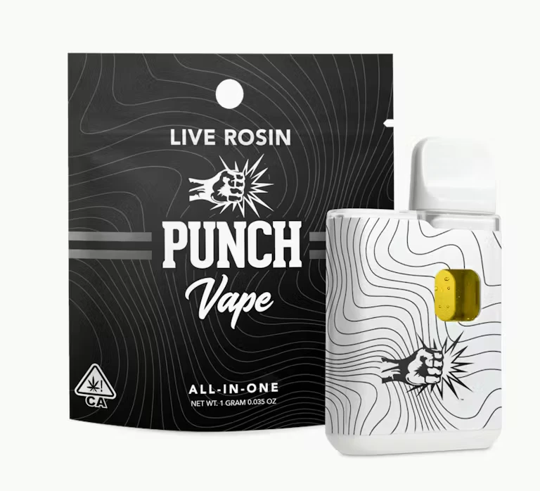 Punch’s Live Rosin AIO delivers a smooth 1 - gram all-in-one experience with perfectly consistent live rosin and reliable rechargeable hardware. Pure flavor, no extras needed. Live Rosin Hits Different.