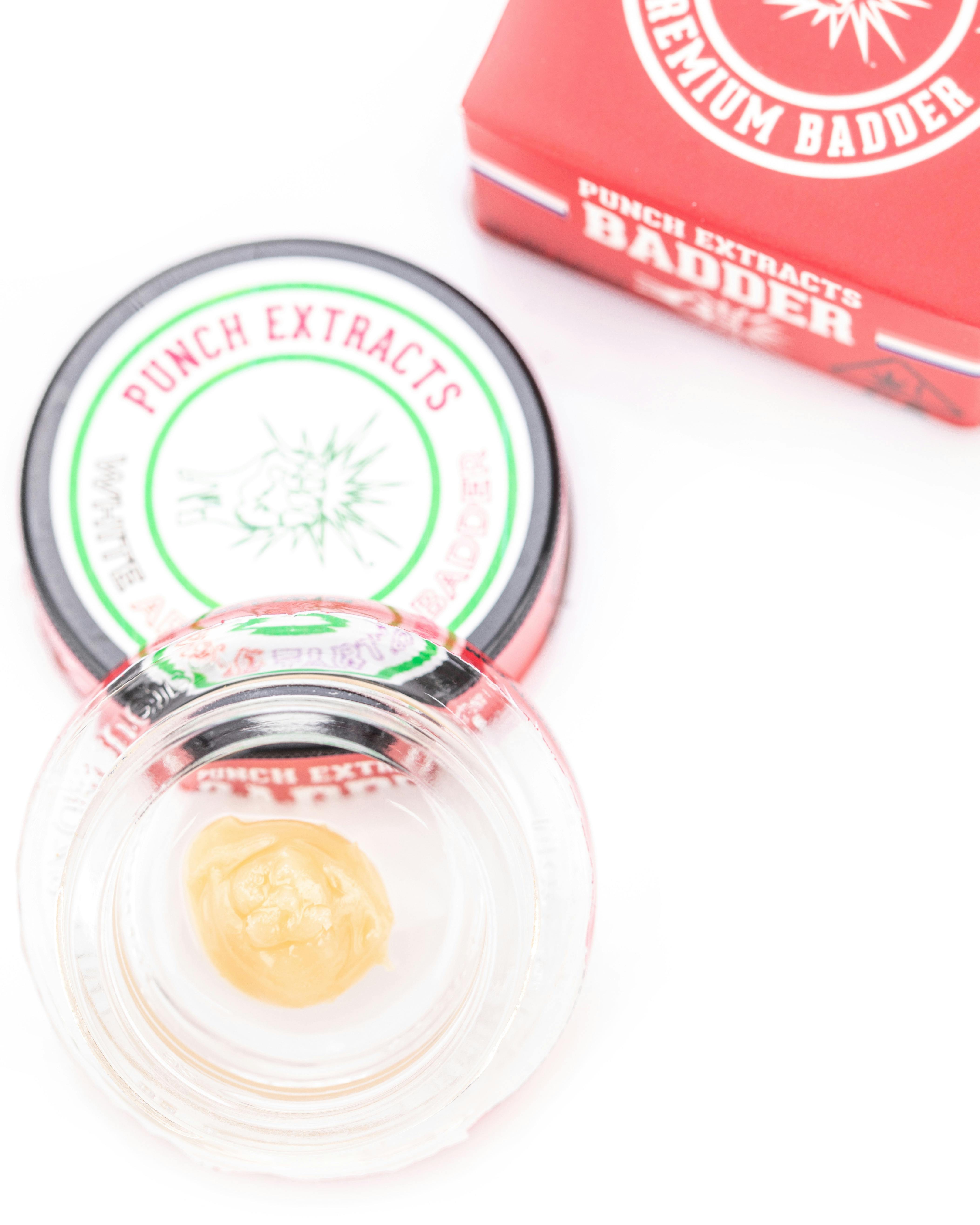 White Apple Tart, Punch BHO Badder is a Hybrid strain that taste of tart sour apple while the exhale brings out notes of creamy berry gas , each dab is potent with terps for an unforgettable experience. Dab between 450 - 550*