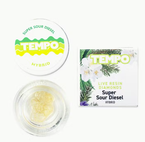 Tempo’s Super Sour Diesel Live Resin Diamonds deliver a vibrant rush of flavor with notes of zesty lemon, earthy diesel, and subtle herbal spice.
